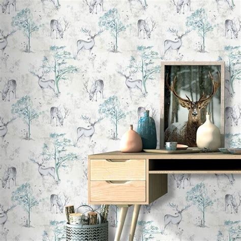 Rasch Stag Forest Pattern Wallpaper Metallic Woodland ...