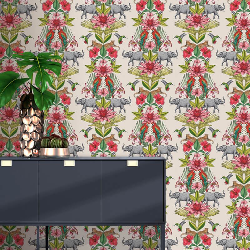Colonial Elephant Forest Animal Print Floral Wallpaper ...