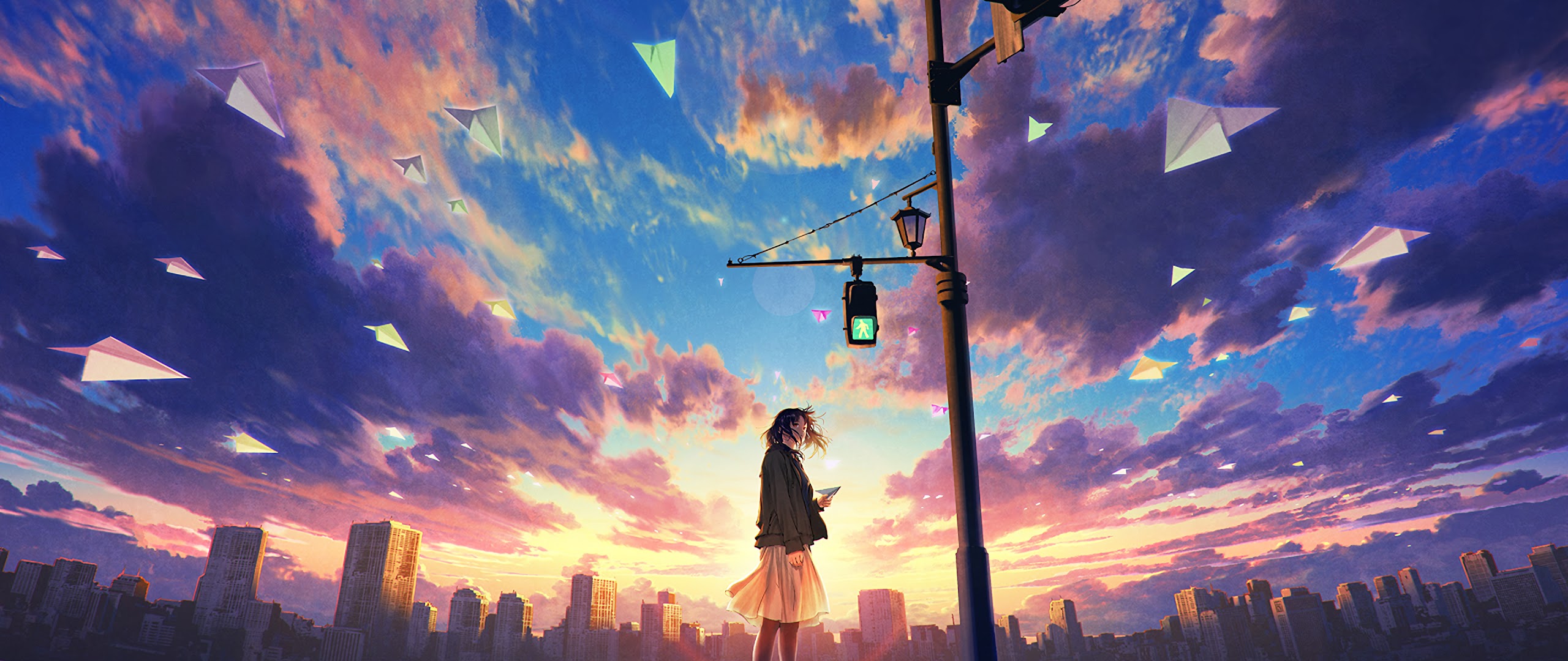 Anime, Girl, Sky, Clouds, Sunrise, Scenery, 4K, #67 Wallpaper